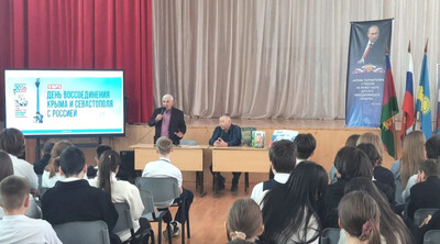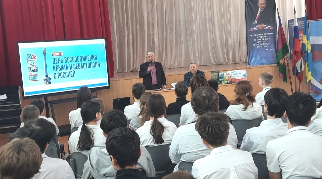 Историк-краевед В.А. Валиев рассказал школьникам о тысячелетних узах, связывающих Крым и Россию. Он привел малоизвестные архивные факты, объяснив, почему воссоединение стало восстановлением исторической справедливости, и заставил ребят взглянуть на прошлое страны новыми глазами.